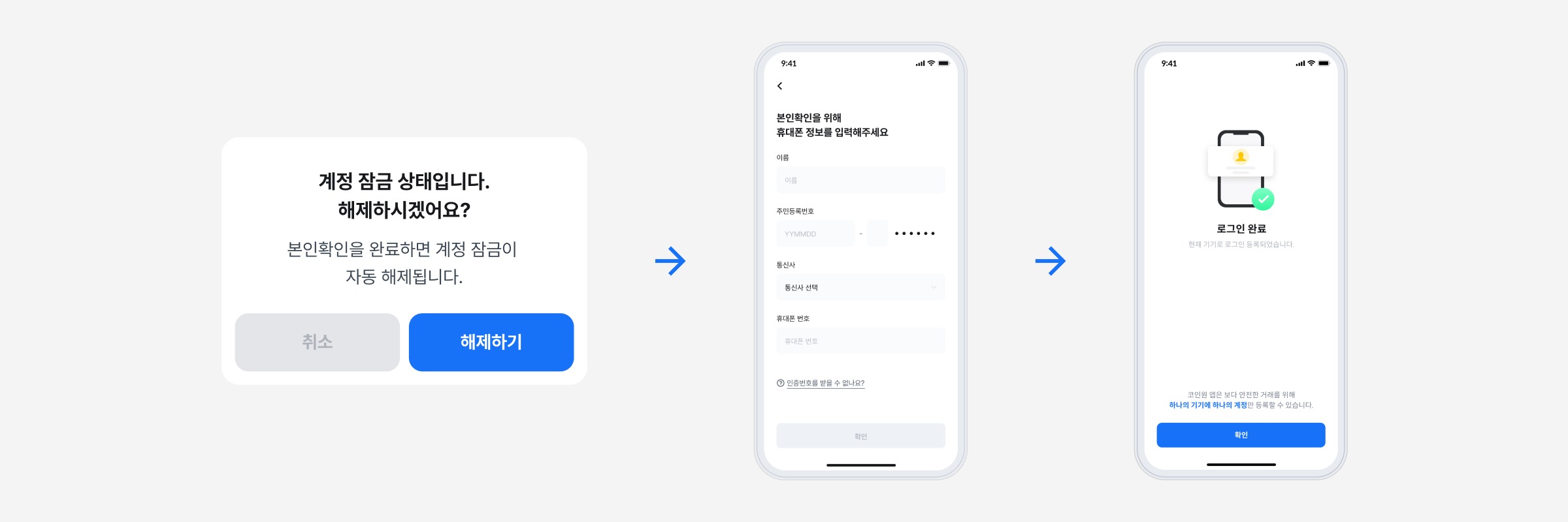 잠금 상태를 해제하고 다시 서비스를 이용하고 싶다면 계정보호를 위해 본인확인을 필수로 진행해야 합니다.