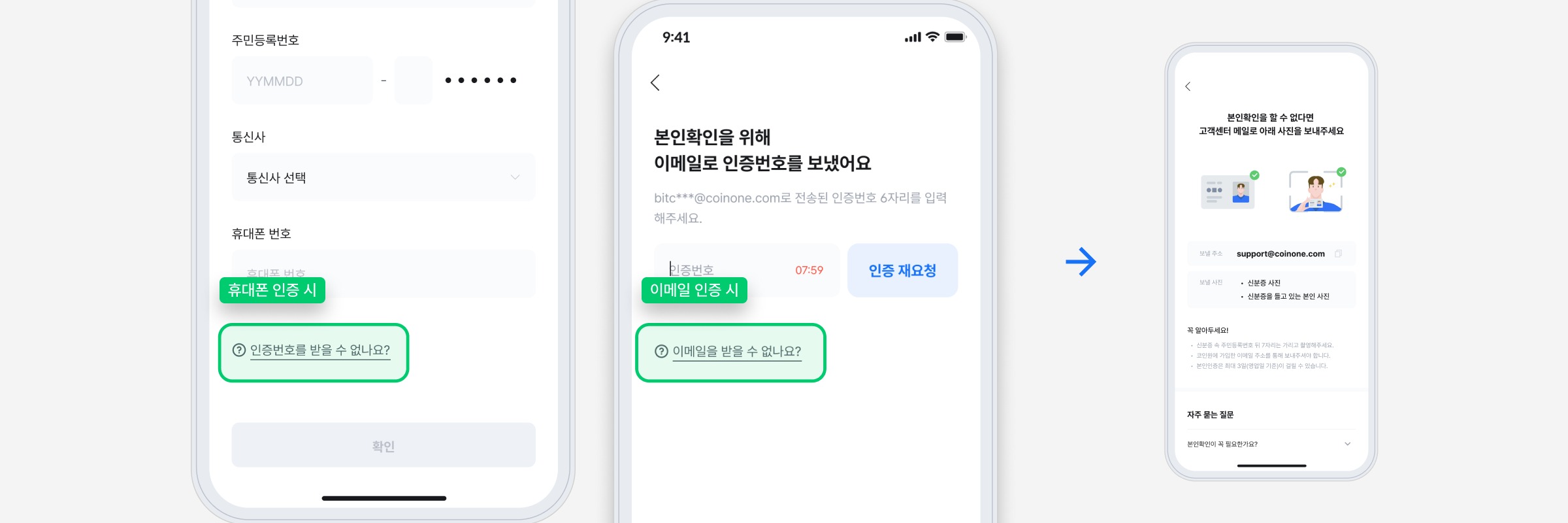 - 본인확인을 할 수 없는 상황이라면, 진행 화면의 안내 버튼을 클릭해 고객센터로 직접 본인확인을 진행해주세요.