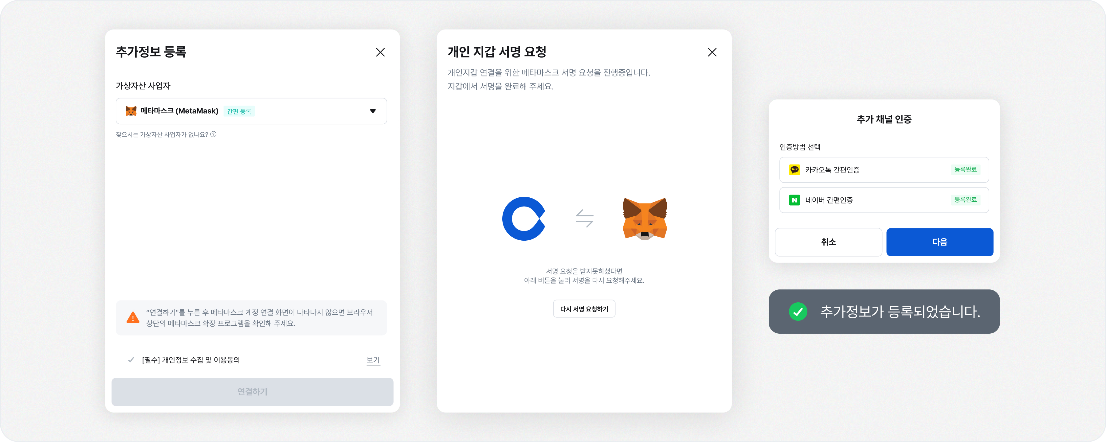 - 추가정보 등록이 완료된 경우 해당 주소로 즉시 출금이 가능합니다.