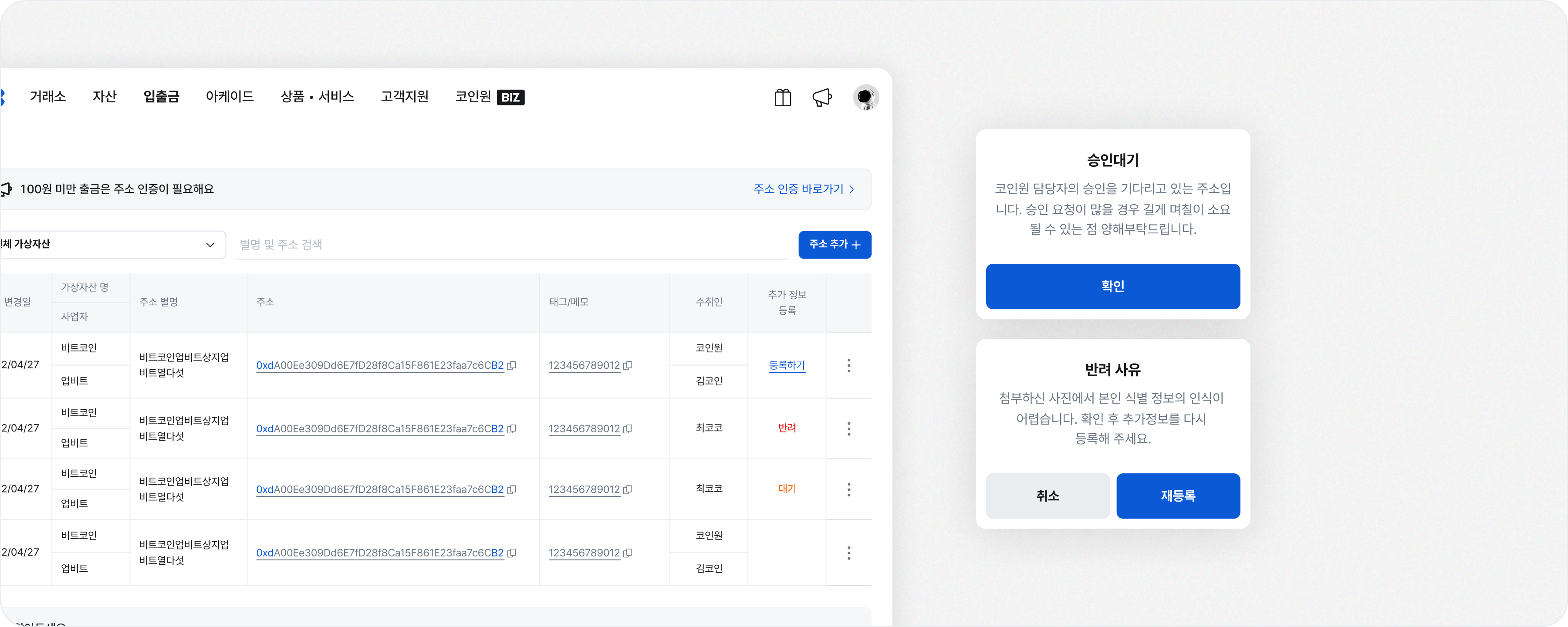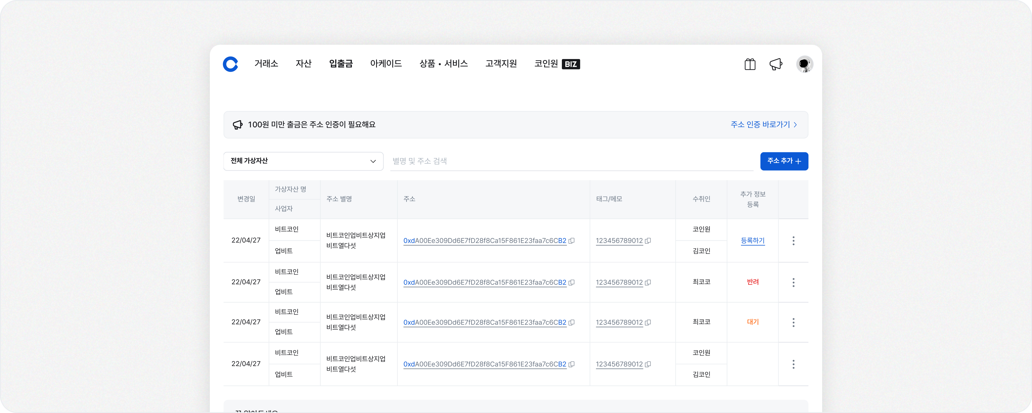 가상자산 주소록 등록 방법 (웹/앱에서 인증하기)