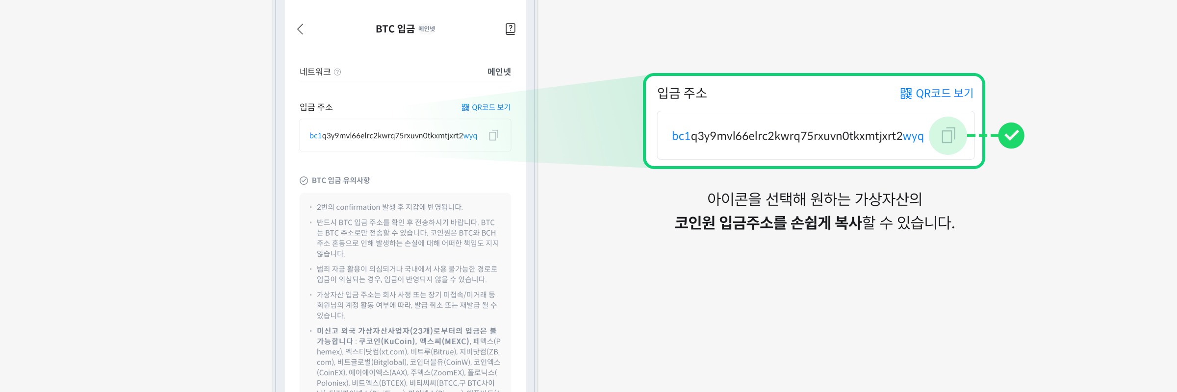 2. 입금 주소가 올바르게 입력 되었는지, 같은 네트워크 기반의 가상자산인지 등을 반드시 확인해주세요.