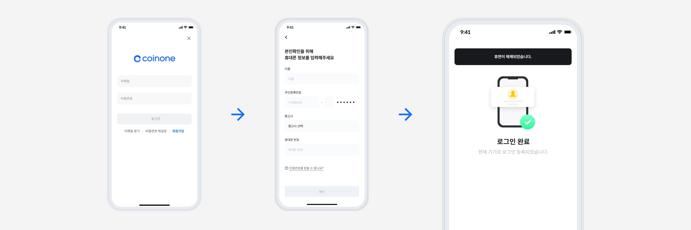 3. 인증에 성공하면, 로그인과 함께 휴면이 해제되어 다시 코인원 서비스를 이용할 수 있습니다.