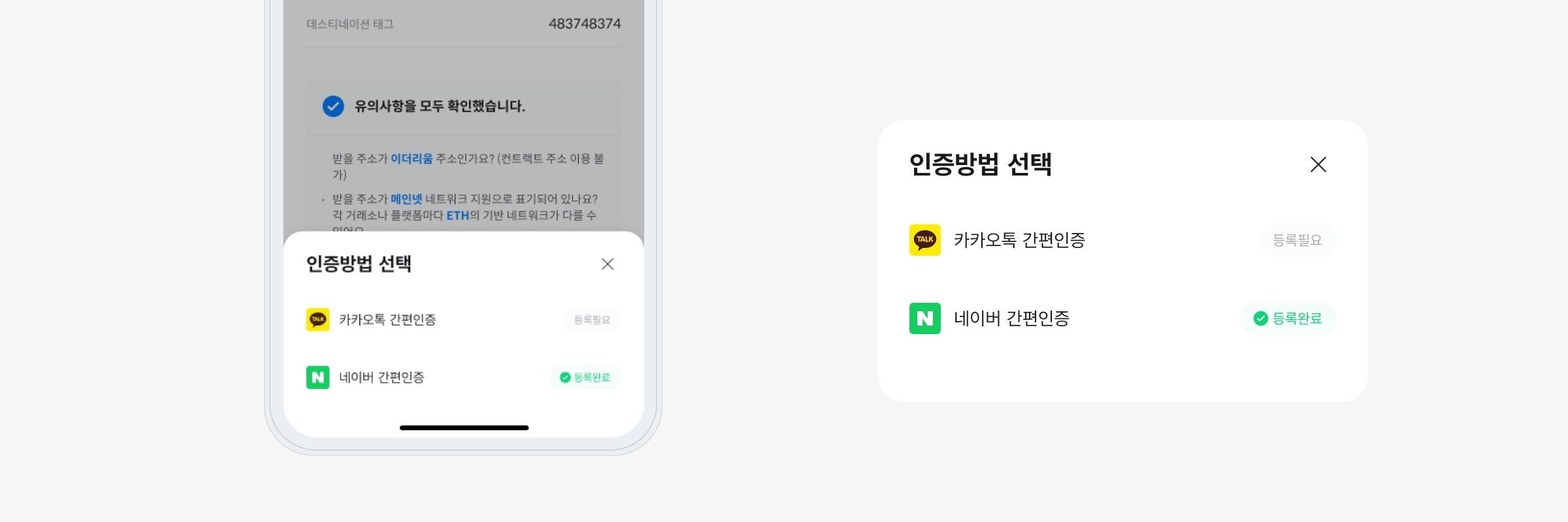 - 네이버 모바일 앱에서 네이버 인증서 발급시 코인원 계정과 신원 정보가 일치하지 않으면 코인원에서 인증 등록, 진행, 해제가 불가능합니다.