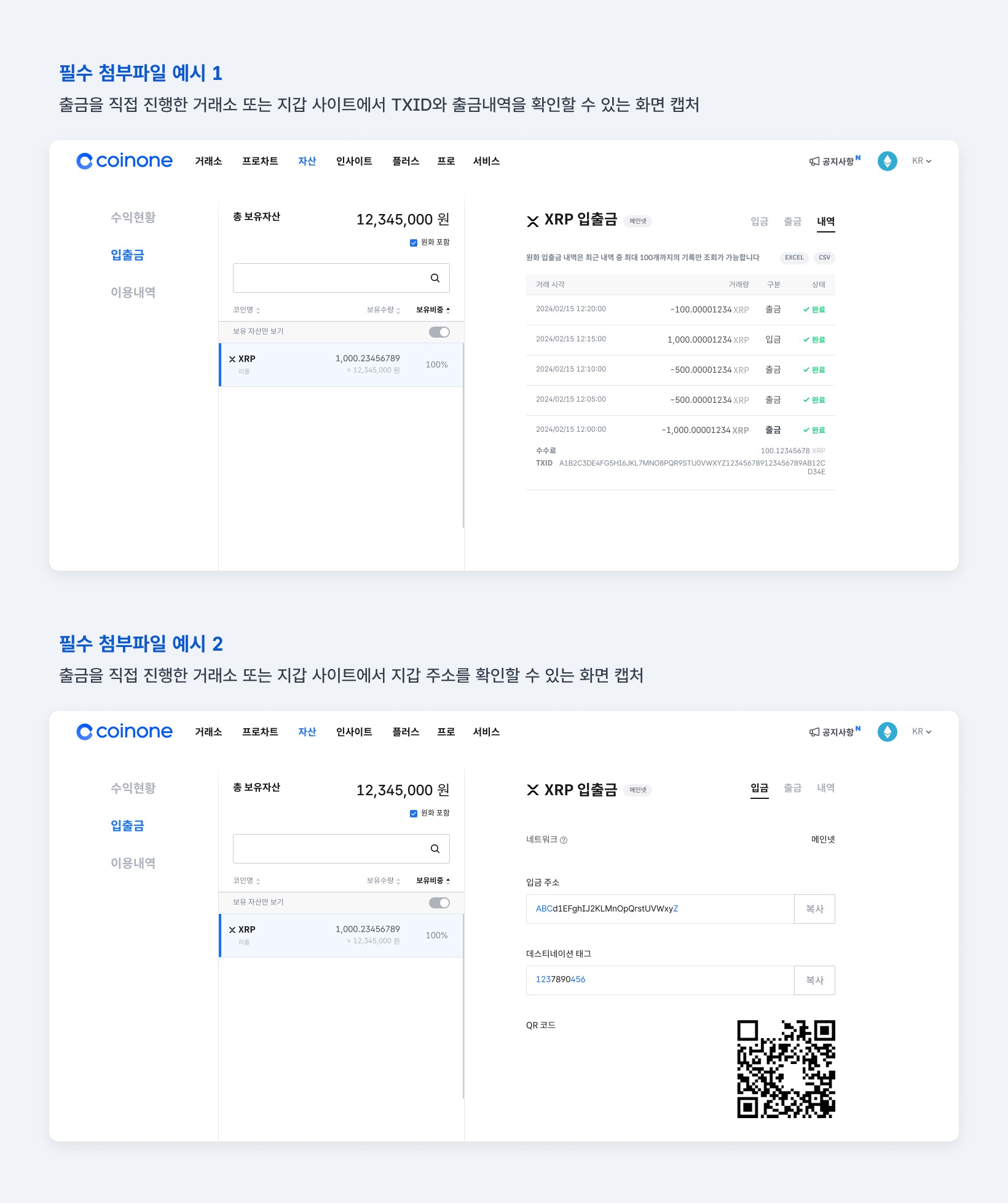 출금처에서 (1)TXID (2)출금 내역 (3)지갑 주소를 증명할 수 있는 전체 캡쳐화면을 첨부해주셔야 합니다.